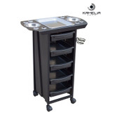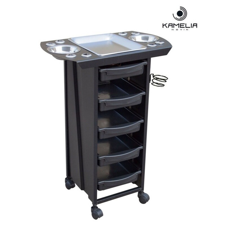 ترولی آرایشگاهی فلزی 5کشو دارای بدنه و صفحه فلزی رنگ به دلخواه مشتری همراه جاسشواری. www.kamelianovin.ir